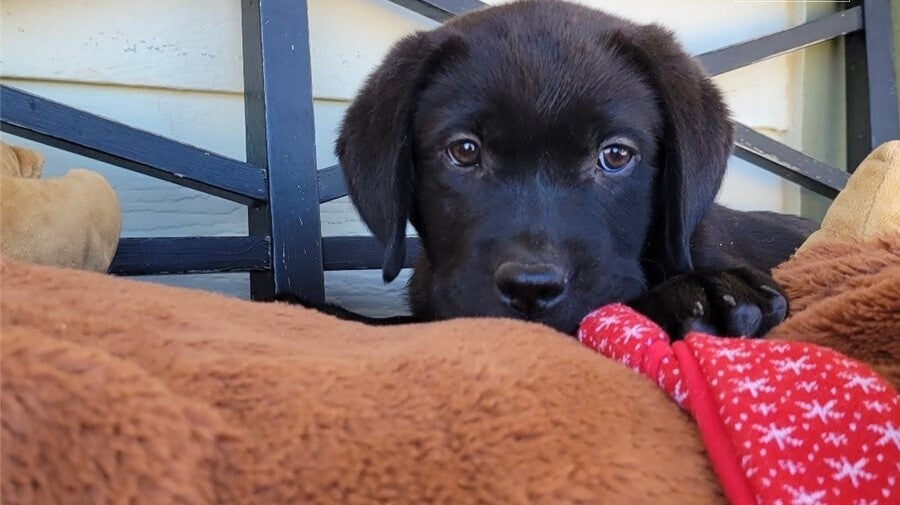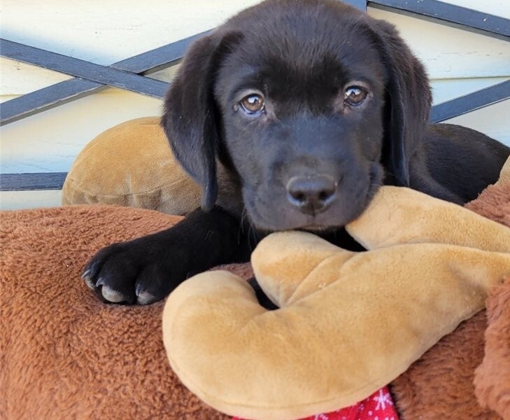 The Labrador Retriever is a British breed of retriever gun dog. It was developed in the United Kingdom from St. John's water dogs imported from Newfoundland. Labs are known for their intelligence, fine character, and good temperament. They have a medium-sized physique, a short coat, floppy ears, and soulful eyes. Labs come in three standard colors: black, yellow, and chocolate
